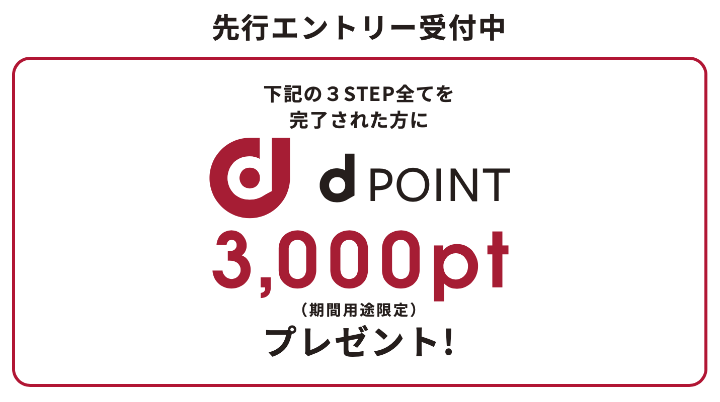☆3月1日の発表で、先行エントリーキャンペーンが強化されました。条件を満たすと進呈されるdポイント(期間・用途限定)が6,000ポイントに増額されます。
