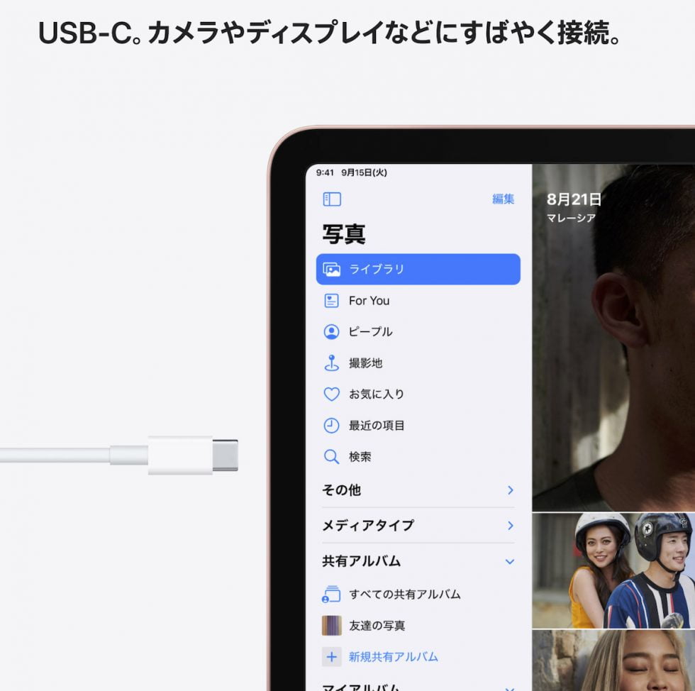 iPad Proがいち早くUSB-Cを採用していますが、ついにAirも同じ規格となりました。