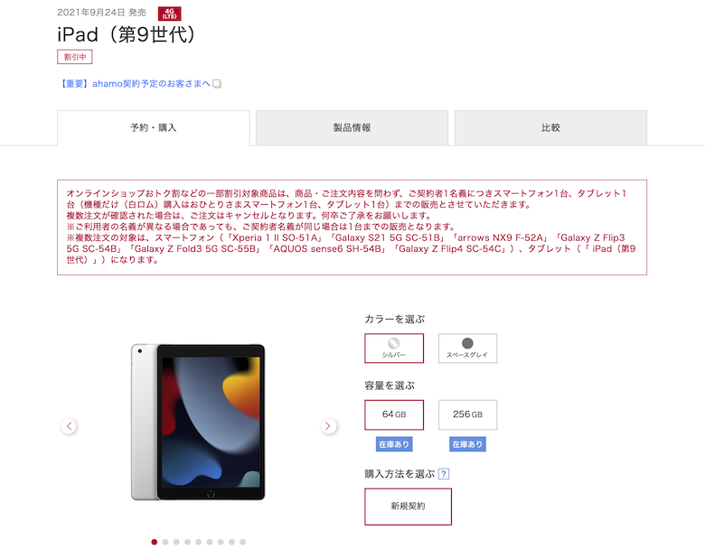【関連】→ ドコモ iPad(第10世代) の予約方法と予約確認する方法【無印iPad】