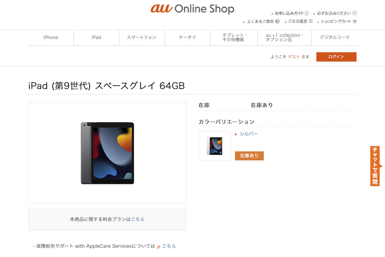 auオンラインショップのiPad(第10世代) の在庫・入荷状況をチェック