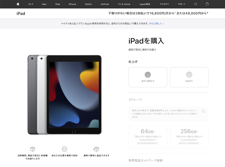 ①アップルオンラインストアのiPadカテゴリから「iPad」を選択