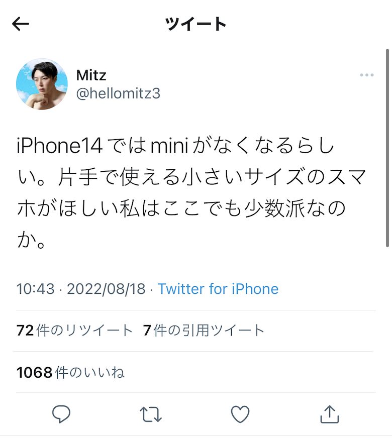 iPhone 14シリーズではminiサイズが廃止されると噂されています。