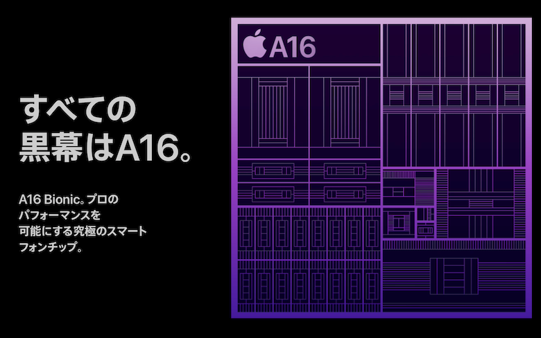 iPhone 14 Pro/iPhone 14 Pro MaxのプロセッサはA16 Bionicを搭載しています。