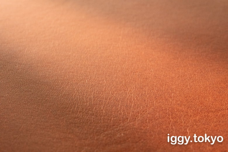 色の濃淡があったり、しわが残っている革の自然な風合いが特徴。