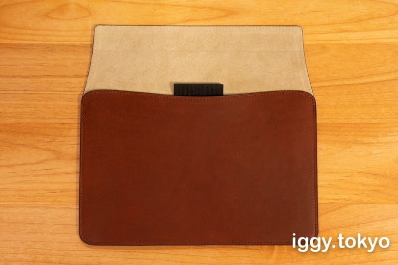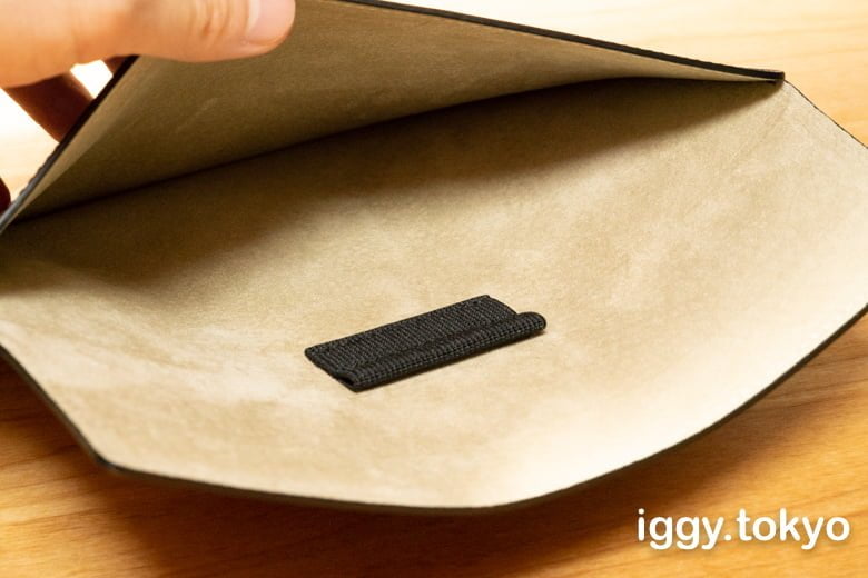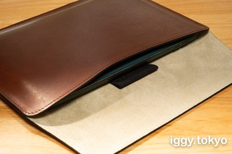 スリーブケースの内側には柔らかなピッグスキン(豚革)が全面に貼られています。