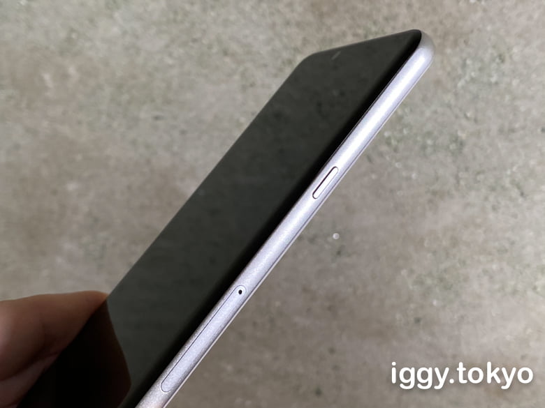 右側面には、電源キーとSIMカード/microSDカードトレイが並んでいます。