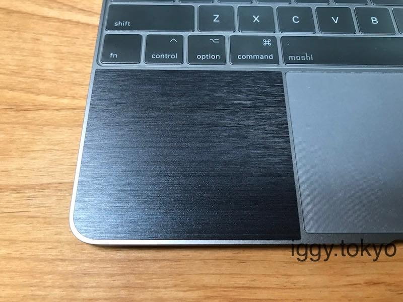 実は個人的にはMacBookのボディーに貼り付ける意味は非常に薄い。なぜならmoshiのシェルカバーを着けているから。でもパームレスト(トラックパッドの左右横部分)を保護するシールが付属しているのが非常に良いなと思ったのだ。