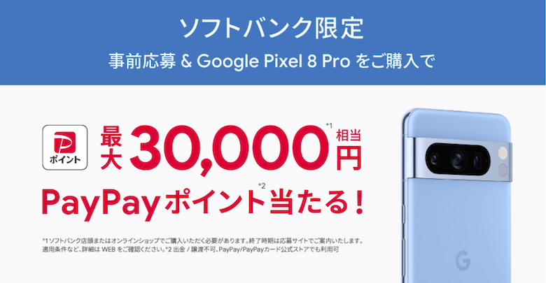 ソフトバンクではPixel8/Pixel8 Proの購入で、PayPayポイントが当たるキャンペーンを実施します。