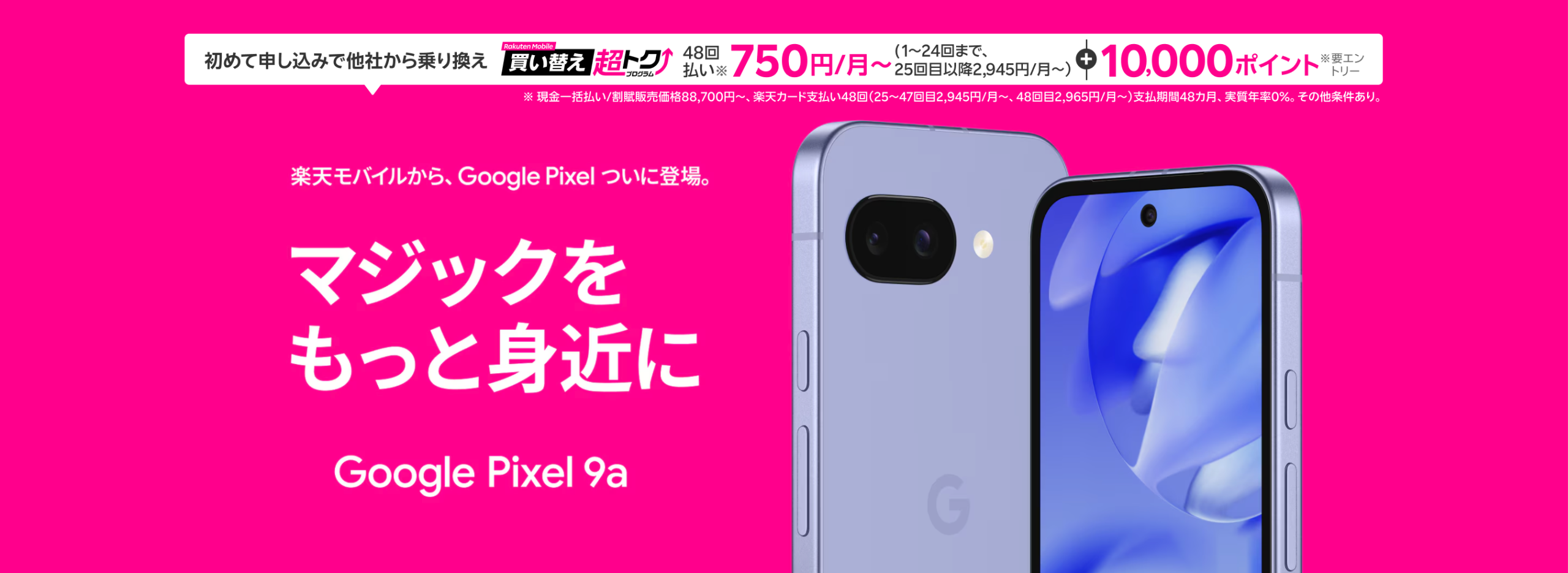 楽天モバイルでPixel 9aをお得に購入するなら、「楽天モバイル買い替え超トクプログラム」の利用がポイントです。