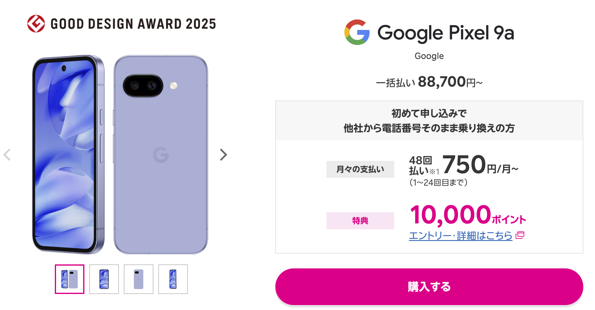 月々750円からPixel 9aが使えるのは、かなり魅力的ですね。