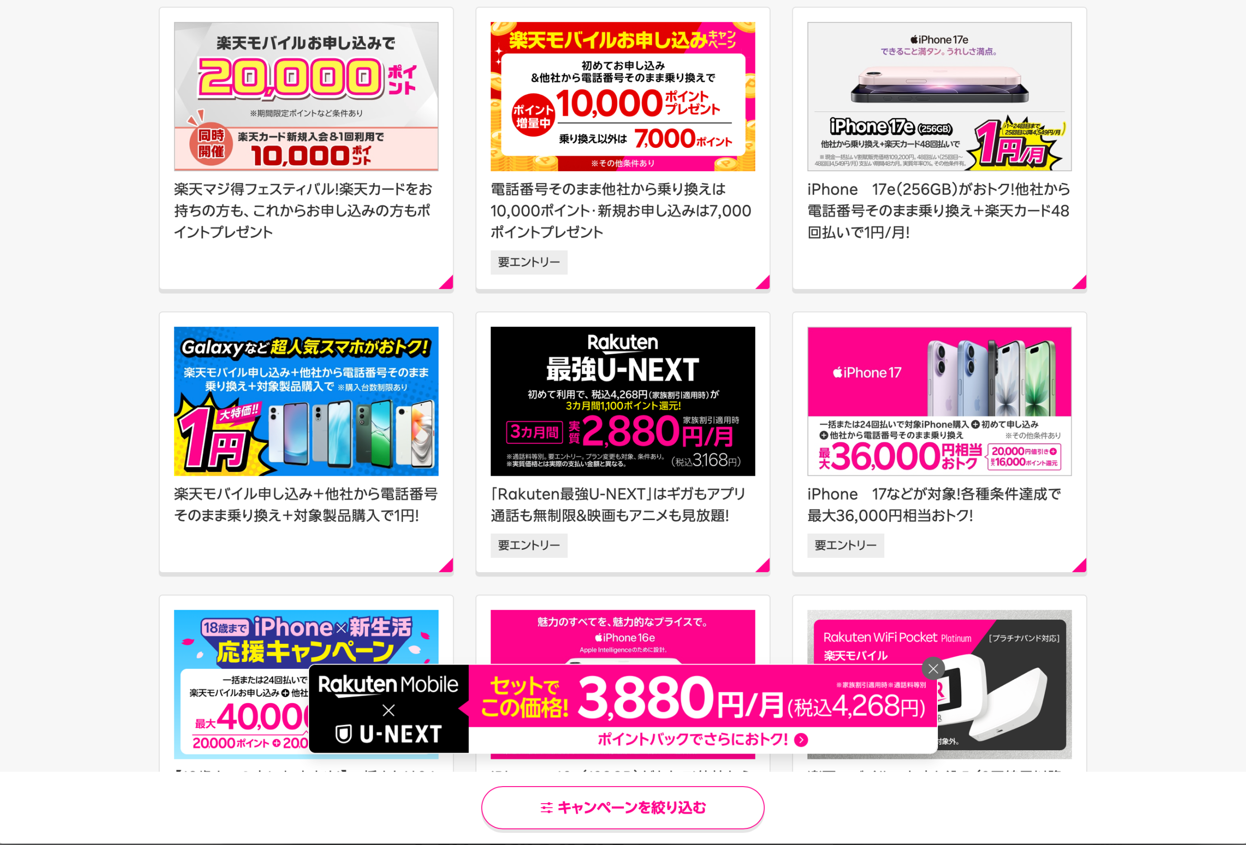 【SIMのみ契約】楽天モバイルのキャンペーン一覧(2026年3月時点)