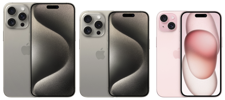 iPhone 15シリーズを、単純に機種代金(一括価格)で比較した場合をまとめると以下のようになります。