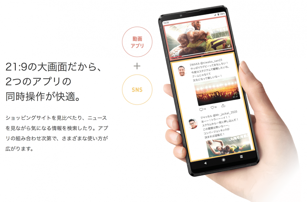 もちろんXperia 1 IIでも21:9の大画面を活かしたマルチウィンドウ機能は利用できます。