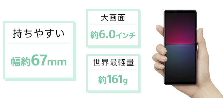 | Xperia 10 IV | 6.0インチ | 153mm | 67mm | 8.3mm | 161g |